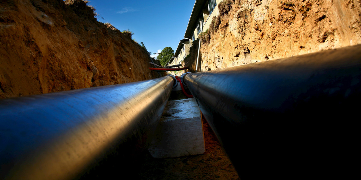 Der arbejdes på højtryk med de nye rør fra akkumuleringstanken til værket, så vi kan få asfalteret vejen igen fredag den 3. oktober 2025.