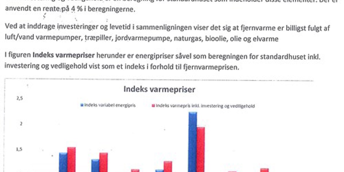 Hvis man sammenligner fjernvarme med andre opvarmningstyper som olie, bioolie, træpiller, naturgas, elvarme, luft/vand...