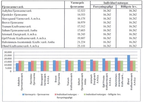 Oplysningerne er baseret på Energitilsynets varmeprisstatistik af 15. marts 2013 og naturgaspriser pr. 1. maj 2013 i henhold til Gasprisguiden.