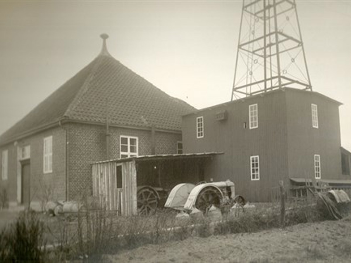 Det sort-hvide billede viser elværksbygningen ca. 1920 og er venligst udlånt af Lokalhistorisk Arkiv Fjerritslev, som vi også takker for værdifulde historiske oplysninger.